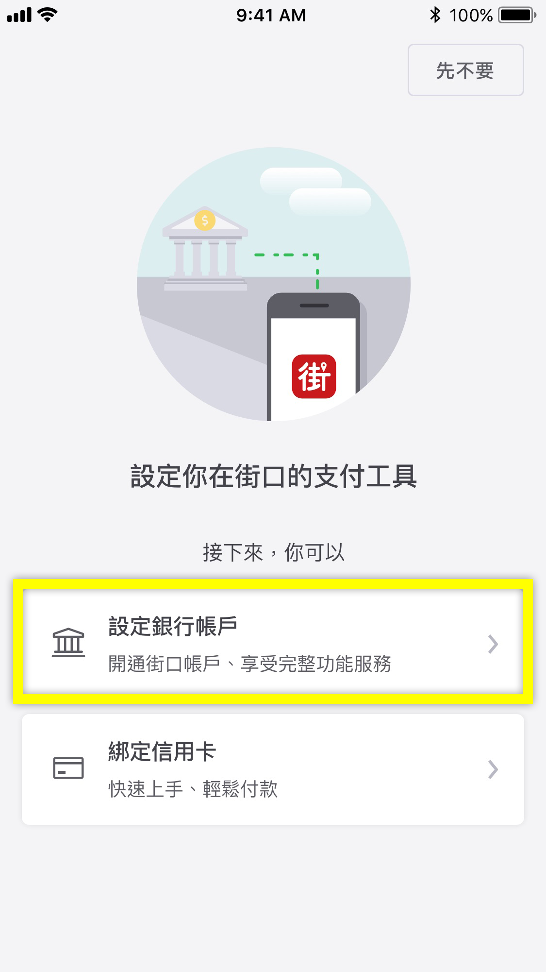 點選「設定銀行帳戶」,依據各銀行流程完成驗證設定。