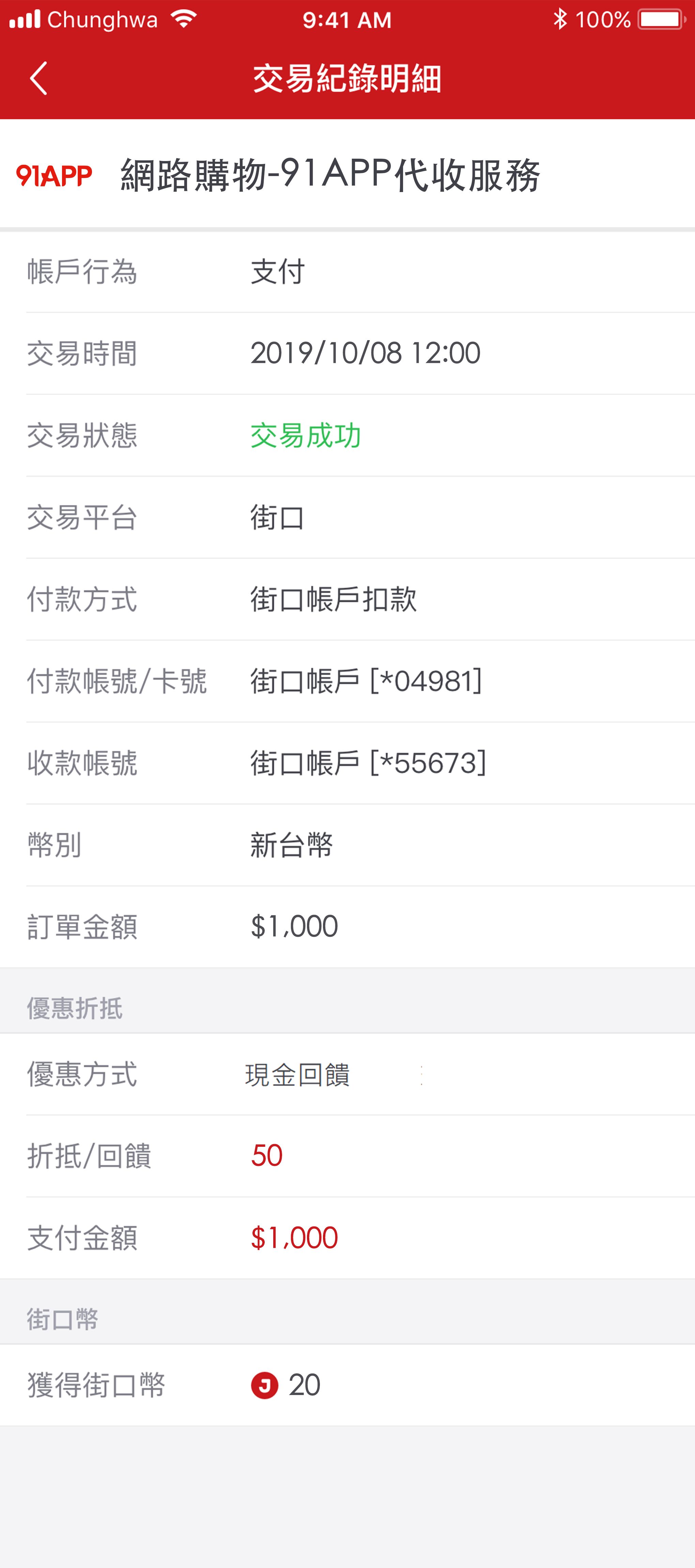 *可至街口支付APP>我的>交易紀錄,查看交易明細。