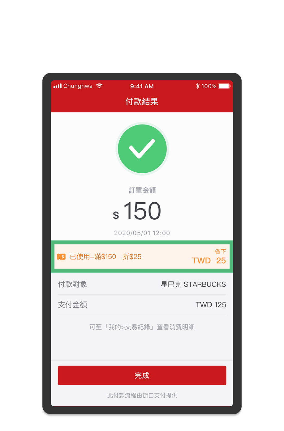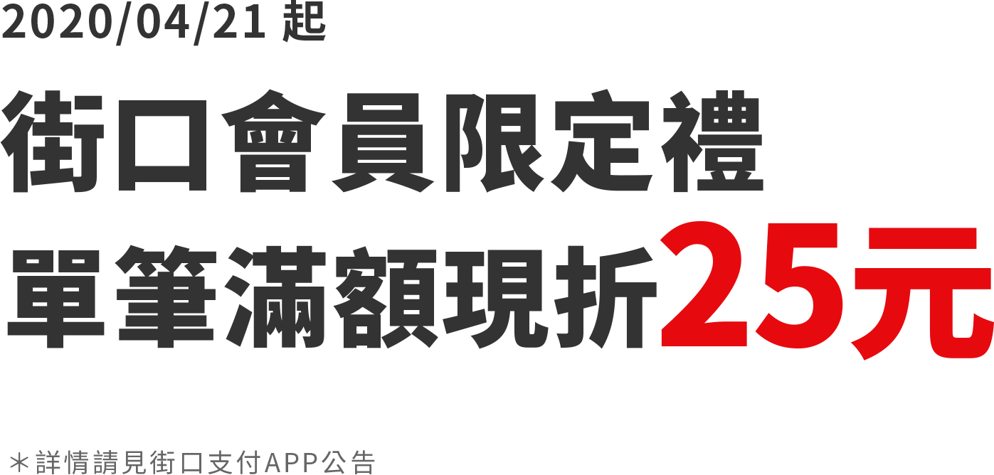 獲得星巴克「街口會員限定禮」者,於全台「星巴克」適用門市,憑該街口券單筆消費滿百元(以上),可立即折抵最高25元!